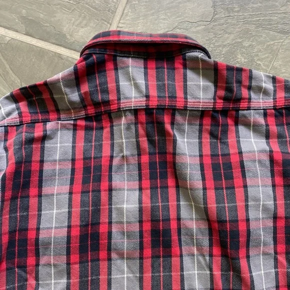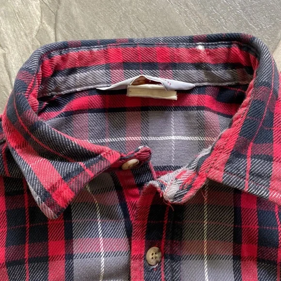 Carhartt Vintage Worn Men’s Flannel Button Down Shirtsize tag worn off- assume Large based off measurements, which are listed belowVintage piece, has been worn in and has signs of that as shown in picturesApproximate measurements: Armpit to armpit: 26”Armpit to bottom hem of sleeve: 20”Armpit to bottom hem: 14.5”Shoulder seam to shoulder seam: 19.5”Top of Shoulder to bottom hem: 30.5”Bottom: side to side: 26”Extra button at bottom of shirt