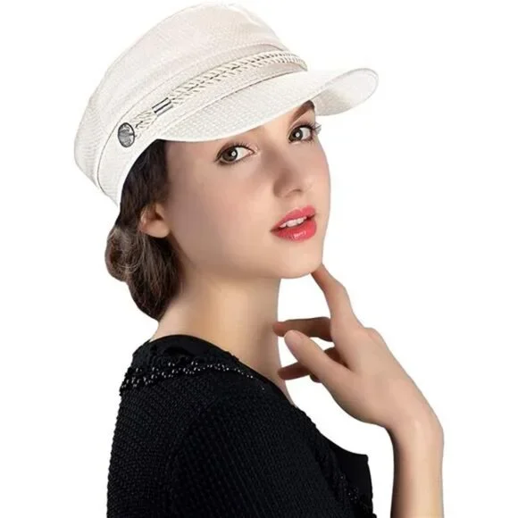 Color: black+beige- 100% Polyester- Imported- Drawstring closure- Hand Wash Only- 2-pack women's fiddler cap, black + beige. Made of breathable polyester material, 2 fashion lady newsboy caps.- Head circumference: 22-22.6 inch / 56-57.5 cm, suitable for most lady heads. Inside with drawstring for adjustment, make it more stable.- With beautiful lines, and stylish woven rope decoration. This lady hat visor design protects the face and eyes from sunlight and UV.- The classic BLACK and elegant BEIGE fiddler cap are suitable for spring, summer, and autumn seasons, perfect for most clothing styles, such as casual and fashion styles.