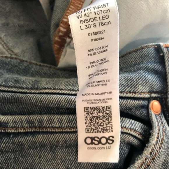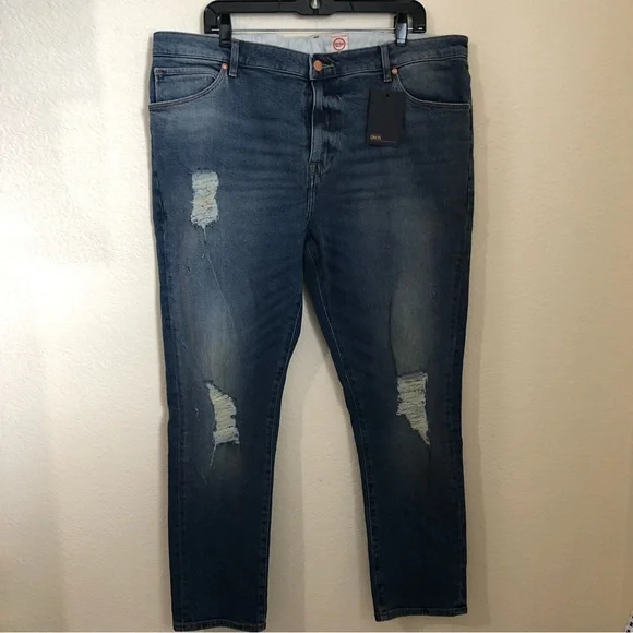 ASOS Remo Skinny Jeans Distressed Mens Waist 42 NWT.Approximately 21" across waist, 29" leg inseam, 12"/15" front/back rise.99% cotton, 1% elastane.Condition is NWT.Tags do not state price.Shipped with USPS Priority Mail.Shop with confidence.Next day shipping.Please check out our fullcloset.Thanks for looking!