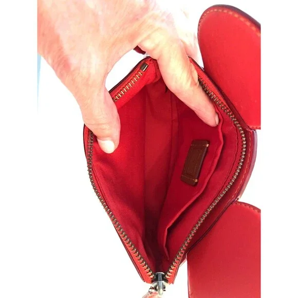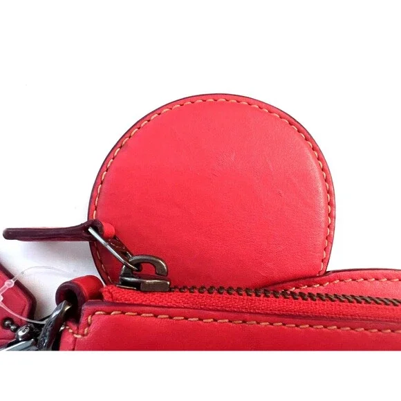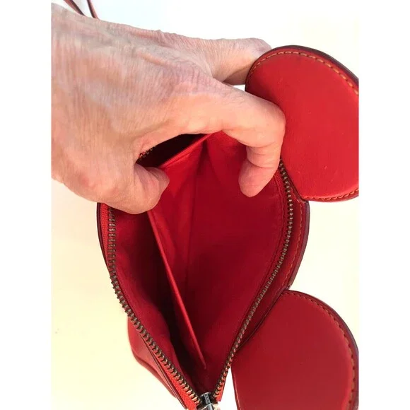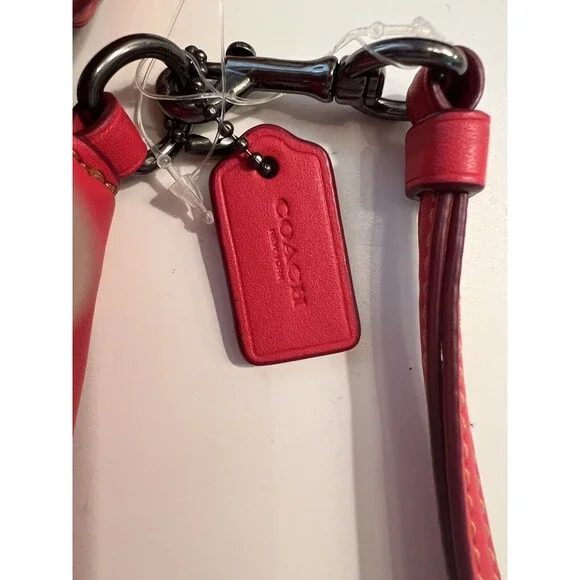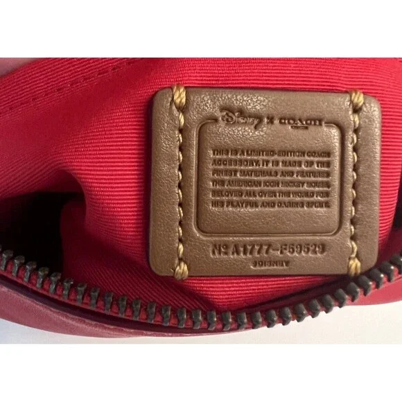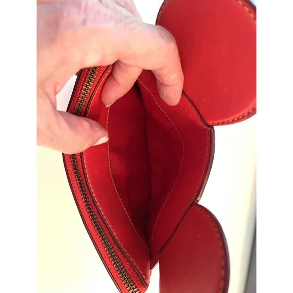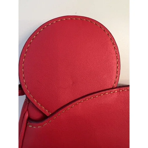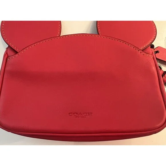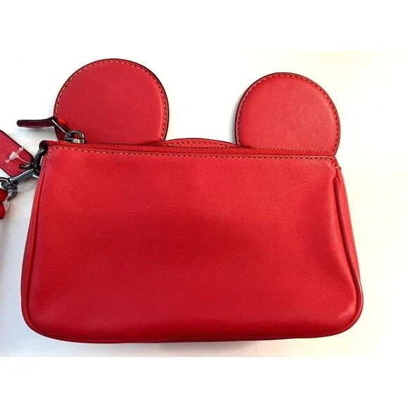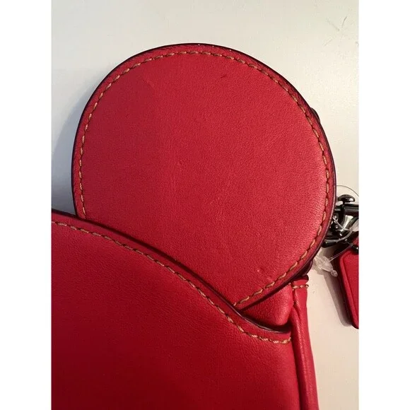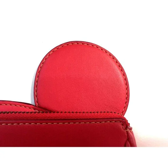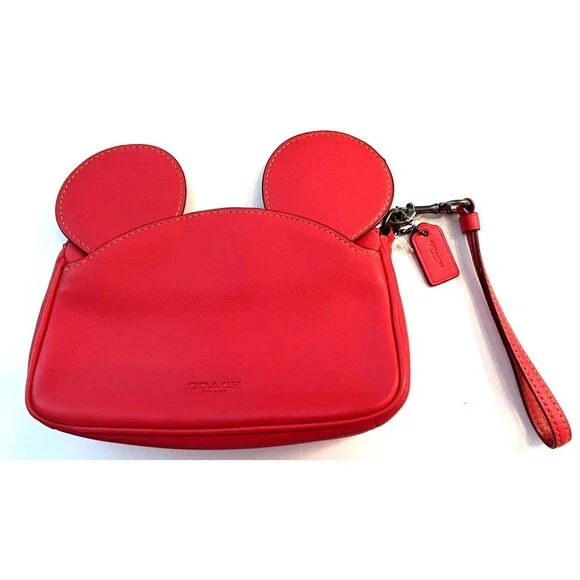 Coach LIMITED EDITION Disney Minnie Mouse Wristlet Red Leather Zip Close Strap 3 CompartmentLimited Edition CoachFinest Quality Accessory"Features the American Icon Mickey Mouse beloved all over the world for his playful and caring spirit"Red leather with red liningGunmetal zipper and gunmetal strap detail3 Compartments 2 secured with zipper close and one on the outside behind the earsApproximately 5 x 8 x 2 inches without ears and 7 x 8 x 2 inches with the ears. ( Height, width, depth)LIMITED EDITION Disney Minnie Mouse Wristlet in vibrant red leather! This wristlet is a delightful collaboration between Coach and Disney, featuring the beloved character Minnie Mouse. With its charming design and practical features, it's a must-have accessory for any Disney enthusiast.Crafted with high-quality red leather, this wristlet exudes elegance and style. The iconic Minnie Mouse motif on the front adds a touch of whimsy and nostalgia. The zip closure ensures the security of your belongings, while the wrist strap provides convenience and easy carrying.This LIMITED EDITION Disney Minnie Mouse Wristlet from Coach is perfect for those times when you want to carry just the essentials. It is sized to hold your cards, cash, and small personal items, making it ideal for a day at the Disney parks or a night out.The attention to detail in this wristlet is remarkable.