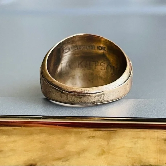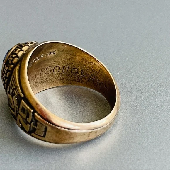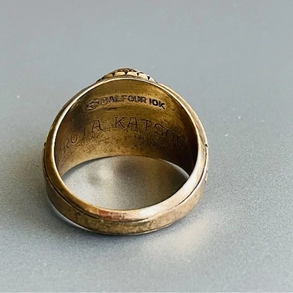 10K Gold Half Hollow Hills H S High School 1979 Class Ring Signed BALFOURSize 7.5Weight 10 gramsStamped “BALFOUR 10K” and Signed “Georgia Katsougraks”In good pre-owned condition.A321*VINTAGE NOTE: Please remember that this item has already had a previous life. Therefore, there might be the occasional imperfection.Trifari, vintage, antique, Jensen, Navajo, Kendra Scott, Pandora, trollbeads, sajen, mikimoto, swarovski, tacori, buccellati, taxco, Native American, Zuni, estate, pollack, bisbee, ring, necklace, brooch, bracelet, king baby, Kenneth jay lane, chrome hearts, silpada, Napier, Sarah coventry, krementz, carolee, heidi daus, mejuri, graff, Agmes, francesca villa, Sophie Brahe, prounis, pariah, erede, jolly bijou, alexis bittar, sauer, alex and ani, Charles garnier, h stern, Anna sheffield, Kramer, hobe, Haskell, eisenberg, schiaparelli,, Carnegie, bogoff, loree rodkin, hatton labs, good art hlywd, Ross Simons, Lagos, monet, Coro, Weiss,Tiffany & co, bvlgari, Cartier, Roberto coin, Chanel, Ysl, Dior, Chopard, John hardy, Scott Kay, Konstantino, van cleef, boochier, le vian, Harry Winston, Piaget,