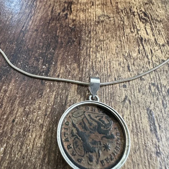 This charm coin pendant necklace features a genuine Roman Constantine the Great coin from 306-337 A.D. set with silver finish.Genuine Constantine the Great Coin Front: Head of ConstantineDiameter:1”Purchased at Baidun Shop Fine Antiquities in the Old City of Jerusalem located at the Sixth Station of the Cross. Him and his son specializes in ancient coins that unearthed and dug out in their house from the Jewish-Roman War.Firm address is The Baidun Shop, Via Dolorosa 6th Station, Jerusalem, Israel.Moving (out of country) so Buy Now or Offer. Bundle to Save on Shipping.Last day to buy is July 22, 2025 (so I can ship while in USA) then my Closet will be temporarily “Not For Sale”