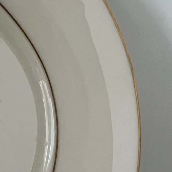 This stunning Lenox USA Hayworth serving platter is a beautiful addition to any table setting. With a classic oval shape and delicate 24k gold trim, it exudes elegance and sophistication. Made of high-quality bone china, it is both durable and lightweight, and can be stacked for easy storage.The Platter features a gorgeous ivory color that complements any decor. Measuring 16 inches in length and 11.5 inches in width, it is the perfect size for serving your favorite dishes. Printed with a backstamp indicating its country of origin (the United States), this platter is in excellent condition and ready for use.Set of 6 matching bread & butter plates available in a separate listing which are the perfect match to go with the platter as an appetizer or dessert set