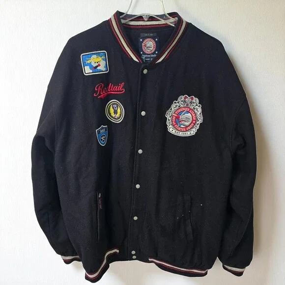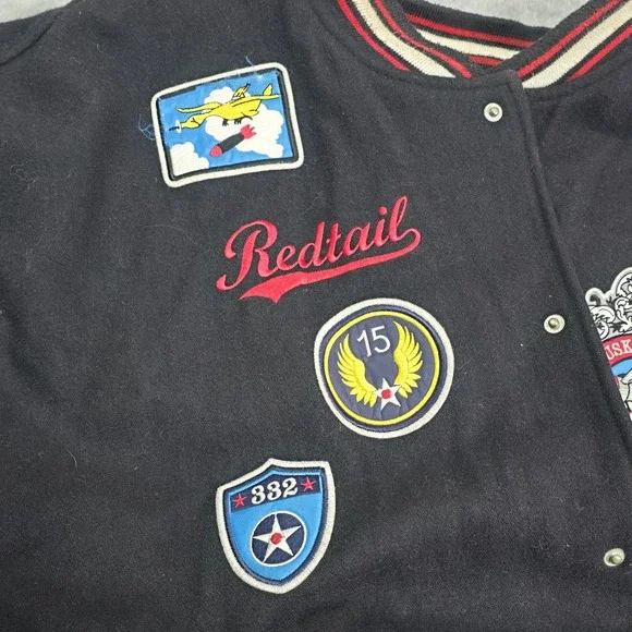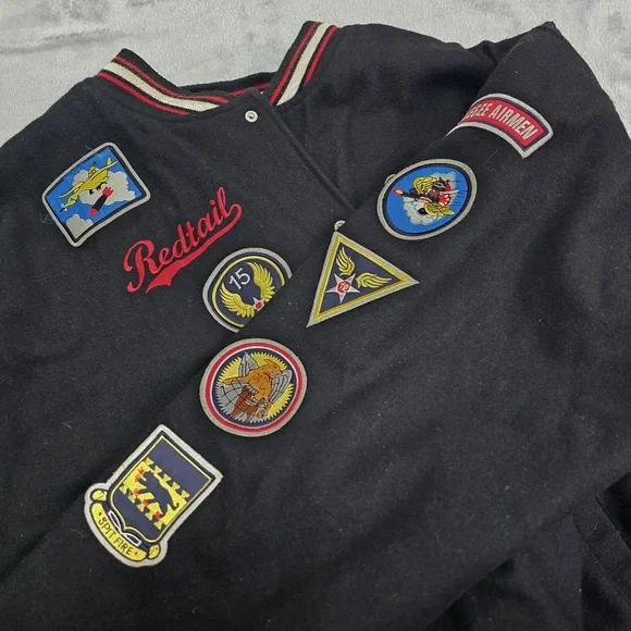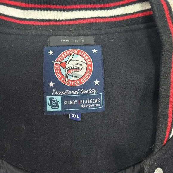 Celebrate history in bold style 🛩️🔥Big Boy Headgear varsity jacket (size 5XL) honoring the legendary Tuskegee Airmen of the 332nd Fighter Group. Patches and embroidery throughout, including “Redtail” script and large back pilot portrait.📏 Pit-to-pit: 31”📏 Length: 33”⚠️ Tear on lower back Perfect for collectors, history buffs, or statement streetwear fits.Bundle to save more!Item comes from a smoke-free, pet-free home.