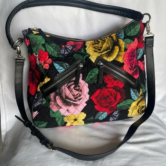 Vera Bradley Havana Rose stylish floral quilted bag is perfect for any occasion. Signature cotton is colorful, lightweight and packableFront features two zip pocketsInterior features two slips and a zip pocketZip closure10" strap dropLightweight, durable 100% cottonSize:11.25" x 16.5" x 5"Front features two zip pockets. Interior features two slips and a zip pocket. Zip closure. Featuringa vibrant mix of colors, it adds a pop of color to your outfit. The black accents provide a sleek contrast, making it a versatile accessory.EUC, No flaws, Smoke free home