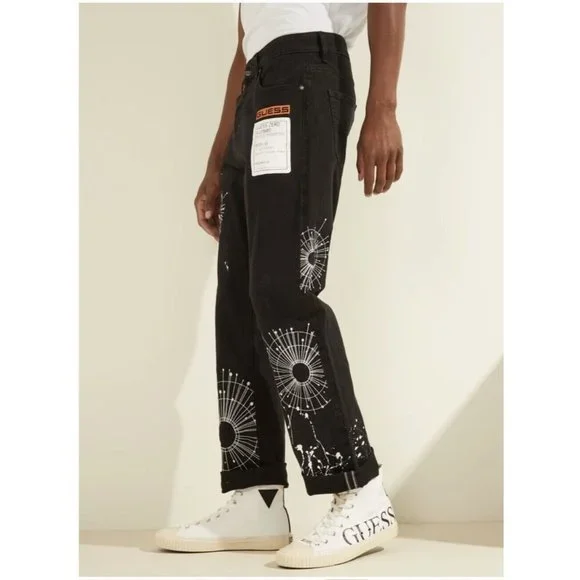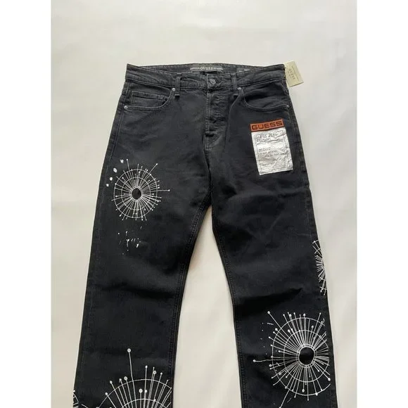 Designed in Italy. Iconic pair of denim jeans designed with a classic slim straight fit, five-pocket construction and destroyed details throughout for a lived-in look.Medium rise, sits at hips. Slim fit with straight leg.Skylab Wash: Distressed black-wash denim with intentional fading and heavy destroyed detailing. Due to the nature of the fabric and wash, each garment has its own unique appearance.Five-pocket construction. Zip fly.86% Cotton, 9% Polyester, 4% Viscose/Rayon, 1% Elastane/SpandexNOTE: Inside the jeans labels cut by half and original tags has been removed this to prevent store returns.JEANS ARE IN PERFECT CONDITIONS• International buyers we do combine shipping ask for details