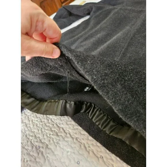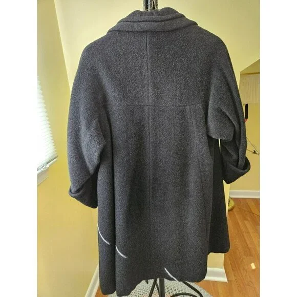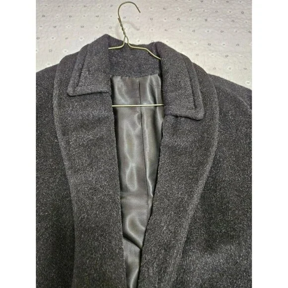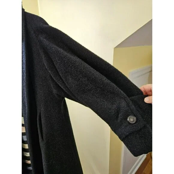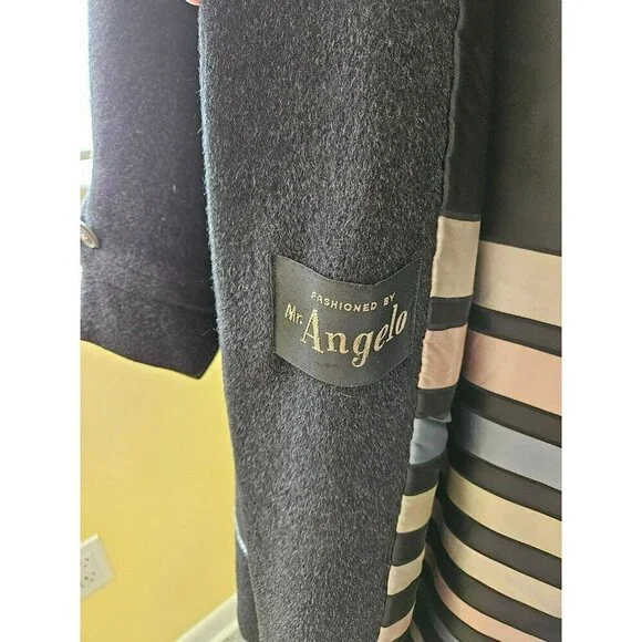 ·VINTAGE Mr. Angelo’s Women’s Wool Coat – Black·Striped Pastel Lining with Satin around lining edges·No size listed – please check measurements below·Double Breasted plus large Collar; no buttons·2 front pockets, large arm cuffs·23” pit to pit, 40 ½ ” from collar to hem·Fashioned by Mr. Angelo·Pre-owned, Excellent Condition - Freshly Dry Cleaned·Quality Seller – Ships in 1 business day·Check out my other listings – I’m happy to combine shipping#OutlanderSeries #LongBlackCoat #VintageBlackCoat