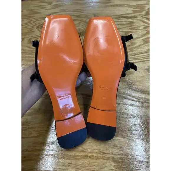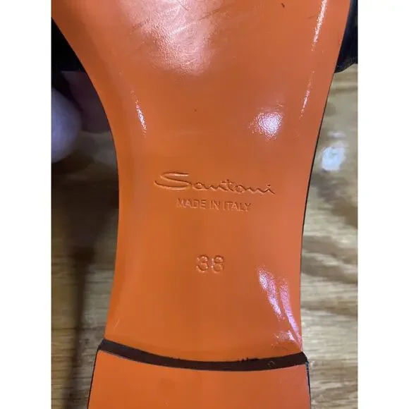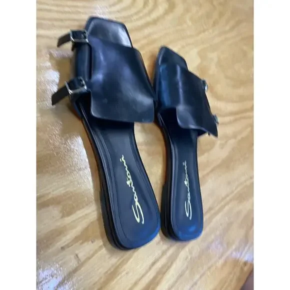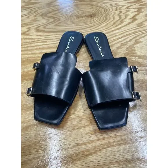 Santoni Slide Sandals Womens 7.5 Black Leather Double Buckle Open Square ToeDescriptionThis item may be a store return, a store display, or last chance items. They often come with no tags or only a sept store tag.Some may show signs of wear, deodorant spots, light spots etc. We do our best to photograph any flaws- review photos carefully.Product Detail• Brand: Santoni• Type: Sandals• Color: Black• Size: 7.5Please message me if you have any questions.