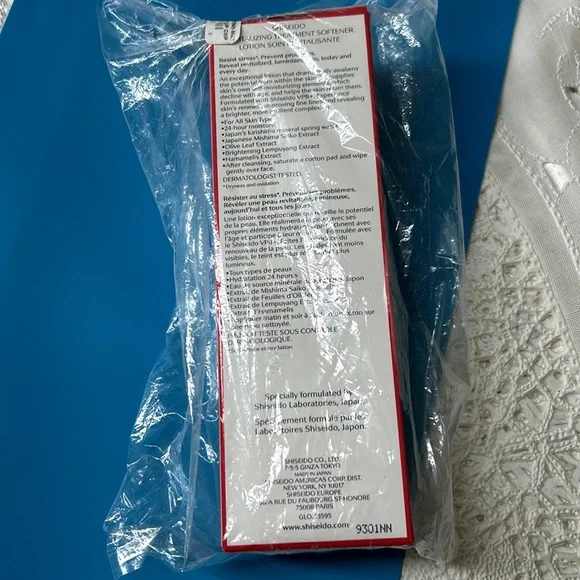 🔹NIB💕 SHISEIDO revitalizing Treatment Softener▪️NEVER OPENED. STILL HAS PLASTIC BAG FROM MACY’S. But some torn part in damaged condition ▪️Original Box has never been opened▪️150 ml/ 5 fl.oz▪️ DESCRIPTION;A deeply moisturizing Japanese softener enriched with effective ingredients to reduce the appearance of and resist multiple signs of aging. It not only delivers moisture but also locks moisture in to help revitalize the skin, making it more receptive to further skincare treatment.Exclusive VP8+ Technology targets dryness and reduces the appearance of fine lines and wrinkles while signature Japanese ingredients provide antioxidant benefits. This softener delivers moisturizing ingredients directly to the skin, making it ideal for dry or mature skin types. Powerful hydration for youthful-looking skin▪️ HOW TO USE;After cleansing, saturate a Shiseido Facial Cotton pad and wipe gently over face.Recommended Pairings: Shiseido Extra Rich Cleansing Milk and Shiseido Vital Perfection Uplifting and Firming Creams▪️1st and the last pics are from official site (SOLD OUT)▪️Retail $77 plus tax▪️Comes in original packaging as shown in 2nd pic⛔️Enlarge/See pics to check size & condition⛔️All sales are final. Please See all pics⛔️lf any Questions, please Kindly ask⛔️Checkout my other listings & Reviews! And purchase with confidence 🩷 Thank you💕🛜Not a Posh member? Enter my referral code EVEJAIMEY when you join & receive a $10 credit after your 1st purchase!