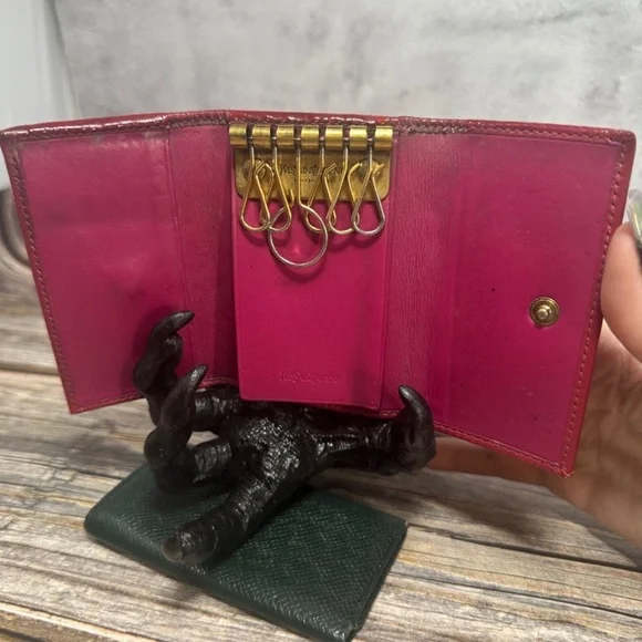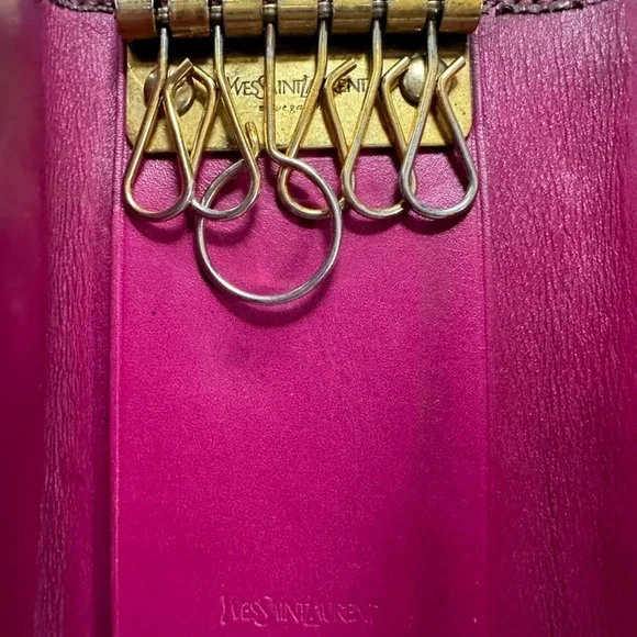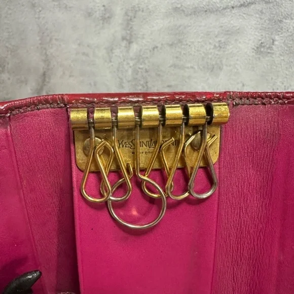 YSL Red Leather 6 Key HolderUnisex.Condition:This key holder is in good condition some signs of wear scratches as rubs, discoloration. There are signs of light wear due to age or storage. Please take a moment to examine all pictures as it is part of the descriptions. All sales are final.This Store is Not affiliated with YSL.