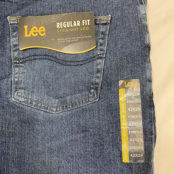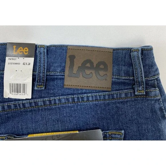Lee Regular Fit Straight Leg Stretch Blue Patriot Wash Denim Jeans Men's 42x29Please keep in mind that the size may vary from what the tag says! Actual flat lay measurements of the item are provided in the photos.Returns Accepted When Returned In the Same Unused Condition As It Was Sent - Shipped with USPS Mail - 3 Options Available!Please confirm your sizing with listing information, provided photos, and flat lay measurements prior to purchase. Message us with any questions to confirm the listing information!Condition is "New With Tag". Please see photos for further condition and sizing reference!