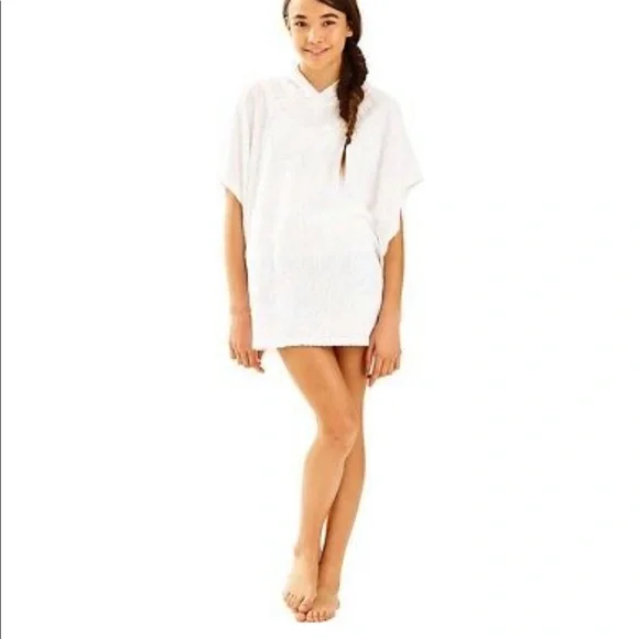 EUC Lilly Pulitzer girls Lyra Cover Up Resort White too Much Bubbly Jacquard size small (4-5). The Lyra Cover-up is a girls towel terry cover-up hoodie. After a long day of sun and fun, this cover-up will keep her cozy on the way home from the beach.·Beach Cover-Up With Hood.·Jacquard Towel Terry (51% Cotton, 33% Modal, 16% Polyester).