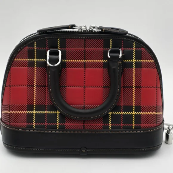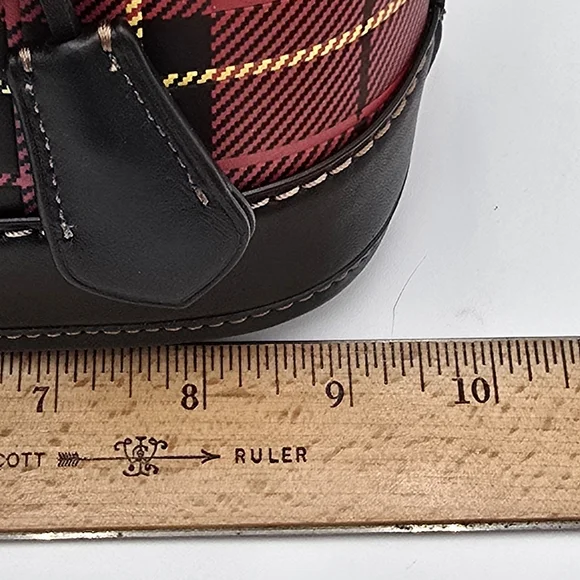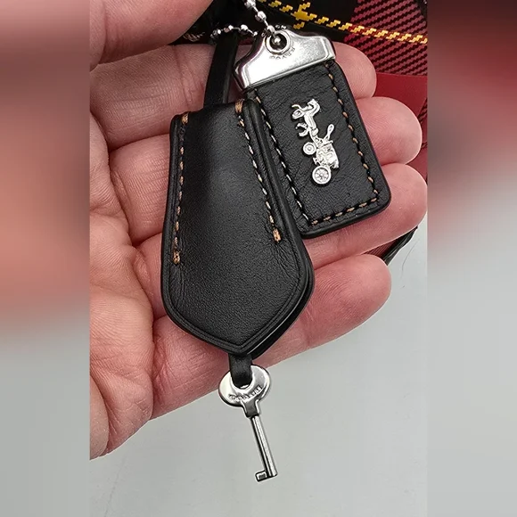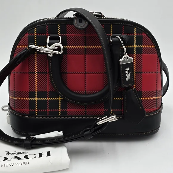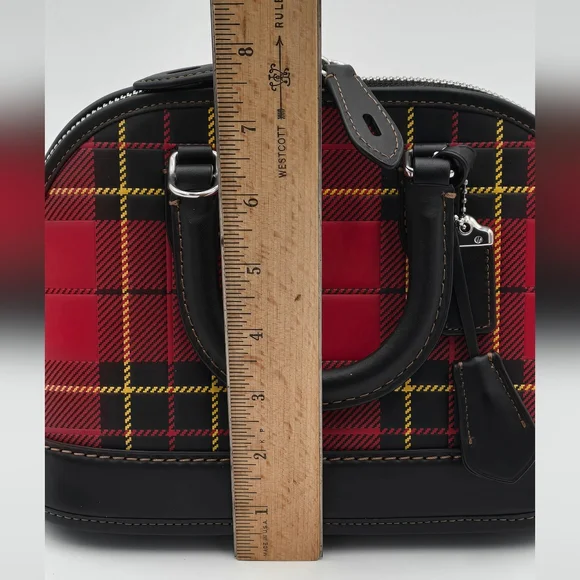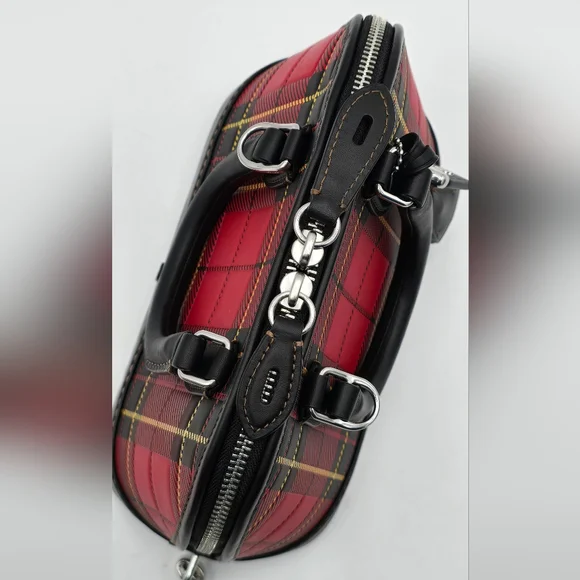 NWOT Coach Glovetanned Leather Revel 24, PlaidGlovetanned leatherInside snap pocketZip closure, fabric liningHandles with 2 1/2" dropDetachable strap with 21 1/2" drop for shoulderor crossbody wearFour protective feet at base9 3/4" (L) x 7" (H) x 4 3/4" (W)Style No. CG194Comes w/Coach dust bag for safe keeping