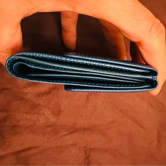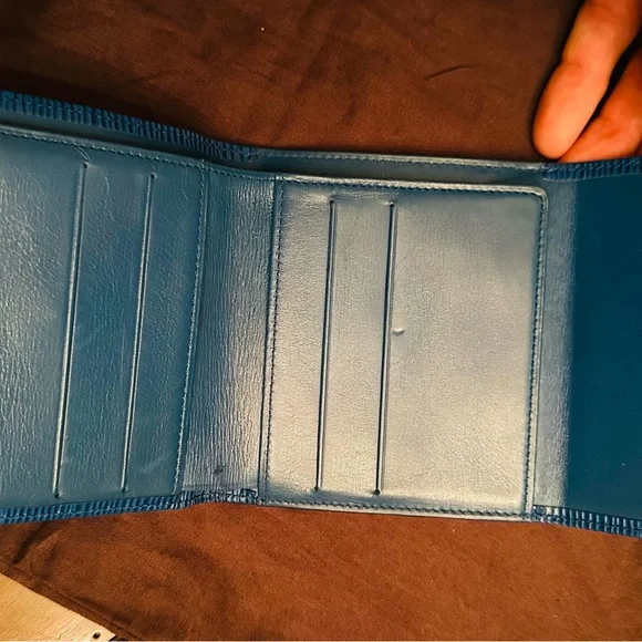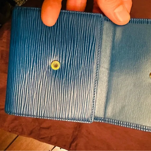Blue Louis vuitton epi leather wallet Elegant and stylish, this Louis Vuitton wallet in blue is perfect for any occasion. Crafted with attention to detail, it offers both functionality and luxury.is in great condition totally authentic clean has small scratch inside not very noticeable is a great purse check the potos can be unisex