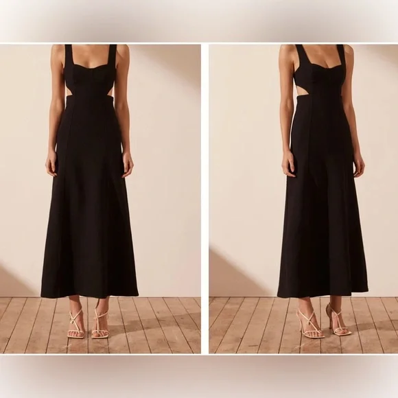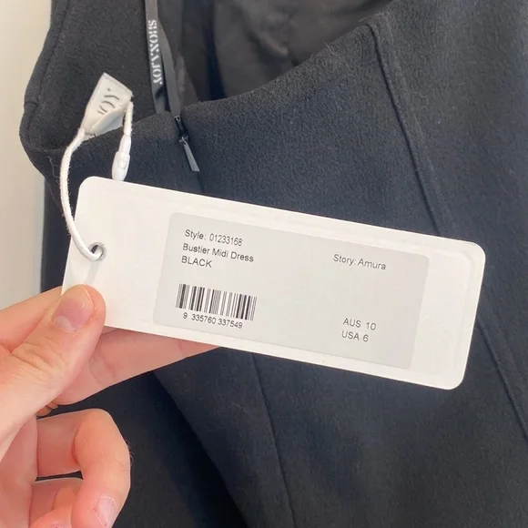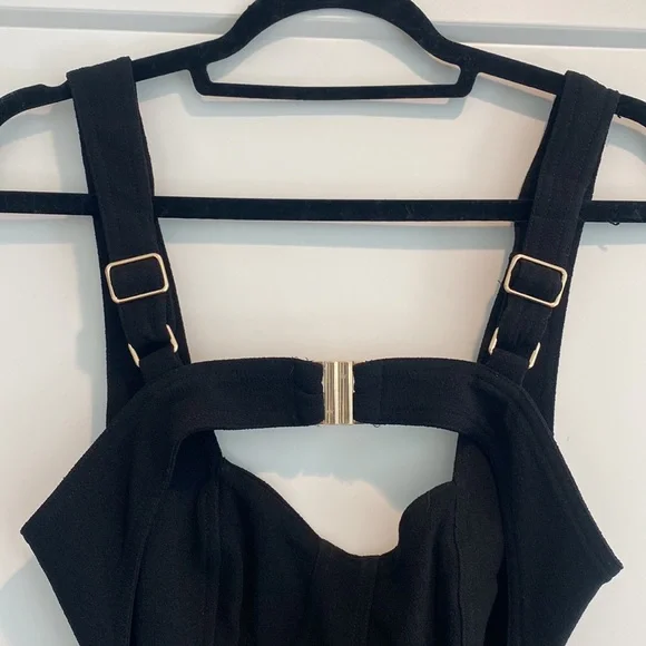 NEW WITH TAGS!Bustier midi dress with cut out detail in a textured crepe fabrication.Textured Crepe FabricationSweetheart necklineAdjustable wide strapsBust panellingCut out bodice detailBack strap with clasp closureInvisible back zipMidi length skirtMedium weight, with some stretch98% Polyester 2% ElastaneLinedDesigned in Australia