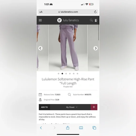New never worn, prefect condition Feel it to believe it. These wide-leg pants have a peach-fuzz touch that is impossible to resist. Dress them up or down, and enjoy the softness all day.peach-fuzz soft, ribbed softstreme™ fabricPeach-fuzz soft, ribbed textureSmooth surface next to skinQuick-dryingMachine washable. Water drops can easily mark this fabric—a simple wash will remove them100% of the polyester in this product (excluding trims) is recycledFabric is derived from responsibly sourced wood-based materials that support the protection of ancient and endangered forestsfeaturesFront pockets with interior card sleeveShockcord at the waist to customize fit58