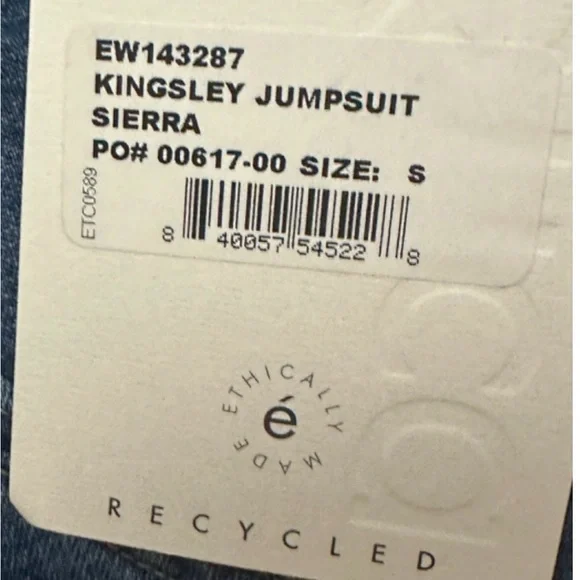 Etica DenimKinsley Denim JumpsuitSize: 6 Waist: 25-26 inchesHips: 35-36 inchesdenim jumpsuit with a hint of stretch for a flattering fitButton-front closure, classic denim styling, and adjustable waist for a perfect fit, side pockets for added conveniencePerfect for pairing with sandals, boots, or sneakers for an effortless look Condition: New With TagsSame or next day shipping All clothing items are laundered unless NWT from a smoke free home All measurements are approximate All items sold as seenShip Monday - Saturday Please ask any questionsSome pictures may be stock pictures for illustration purposes.