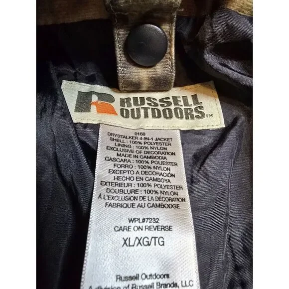 Get ready for your next hunting trip with this Russell Outdoors camo jacket. The jacket features a Mossy Oak BreakUp pattern in multi-colors, making it perfect for any outdoor activity. It is made of polyester and is water-resistant, ensuring that you stay dry in any weather condition. This jacket is designed for men and comes in a size XL. It has a regular fit and is perfect for any hunting adventure.