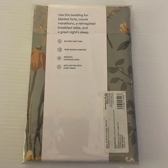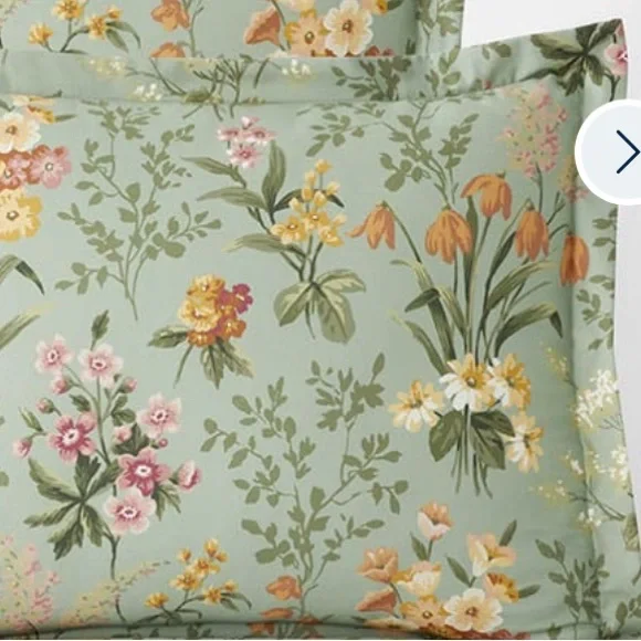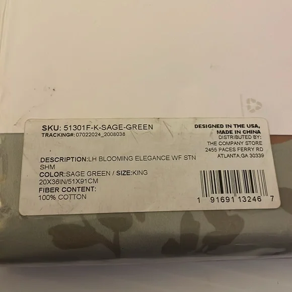 The Company Store Blooming Elegance Premium Smooth WrinkleFree Sateen King ShamSage GreenNew with tags in packaging Sold out online 1 shamAn elegant choice for the primary suite, this luxurious floral print sateen sham blossoms with romantic painted blooms in restful shades of gold, amber, pink, claret, and olive against a sage green field. Crafted of buttery-soft and breathable sateen, this bedding collection has a subtle sheen and wrinkle-free finish that’s perfect for all-season comfort.300-thread count100% combed cotton wrinkle-free sateenPillow sham has a 6 in. back closure overlap to keep your pillow in place