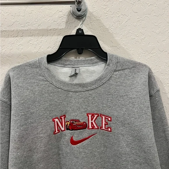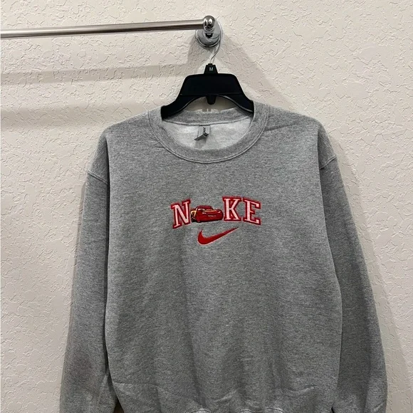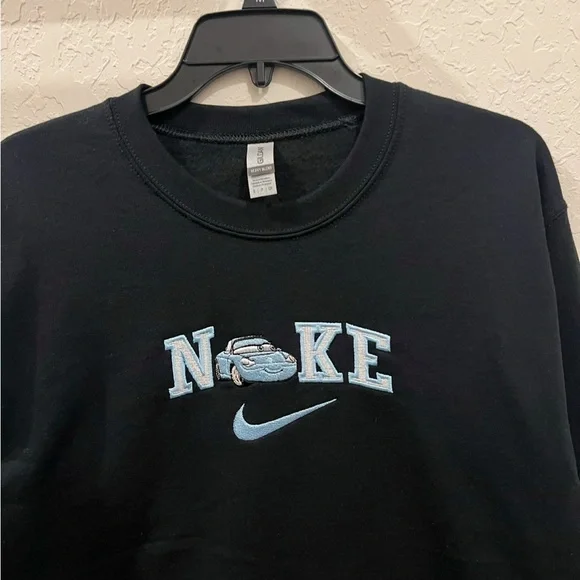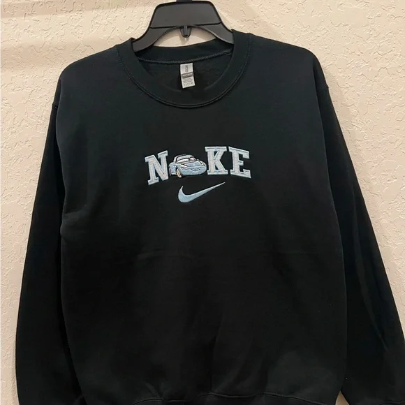 Custom Nike Cars couple bundle sweaters machine embroidered . Message me if you need 2 different sizes if not just order the size you need for both PLEASE KEEP IN MIND THAT I DO MAKE THESE AND I AM A ONE MAN ARMY. SO IT WILL TAKE ME ABOUT 4 - 8 DAYS TO SHIP!50% cotton and 50% polyesterMeasurements (in inches)Small:Body Width - 20Full Body Length - 26Sleeve Length - 33Medium:Body Width - 22Full Body Length - 27Sleeve Length - 34Large:Body Width - 24Full Body Length - 28Sleeve Length - 35X-Large:Body Width - 26Full Body Length - 29Sleeve Length - 36XX-Large:Body Width - 28Full Body Length - 30Sleeve Length - 37