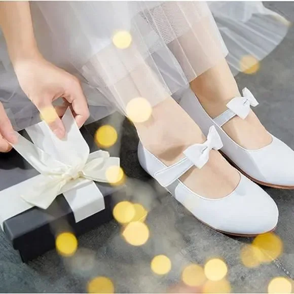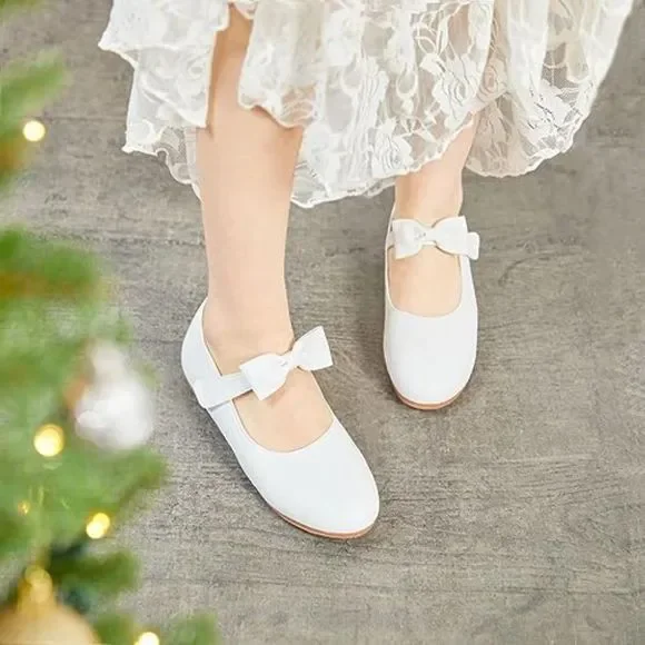 Rubber soleANTI-SLIP RUBBER SOLE and LIGHT WEIGHTBoth THIN and WIDE FEET FriendlyFASHION DESIGN - Sparkle Surface With Cute Bowknot Design.MARY JANE T STRAP STYTLE, EASY WEAR- Toddler Ballet Flats Design With Hook and Loop, Made It Easy to Put on, Take off, and Stay on.MULTIPLE COLLOCATIONS: These Toddler Girl Dress Shoes Will Fits For Any Occasion And Outfit: Wedding/Party/Daily/School