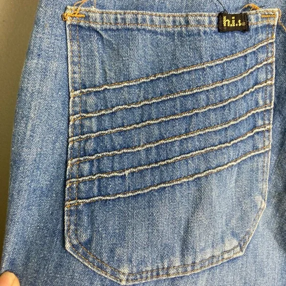 VTG HIS Boot Cut Jeans Womens Size 33 Blue High Rise Whisker Medium Wash DenimTrue 70's style fashion here with the matching denim patches in KISS style shapes to the seam details on the back pockets. VintageBootcut legHigh riseMedium washDenim Whiskering patternMultiple pocketsFly zip and snap closure Belt loopsMachine washGood pre-owned condition with lots of life left. Some signs of wear in some areas of the denim.Size says 15 W - so the number in the title is in reference to the waist measurement. Please determine fit based on these measurements.Measurements:16.5" across waist11.5" rise31" inseamShop with confidence. As a former professional photographer, I do my best to capture any flaws and to represent items so that they look the same when you receive it.Tags: streetwear casual travel school everyday going out skateboarding retro