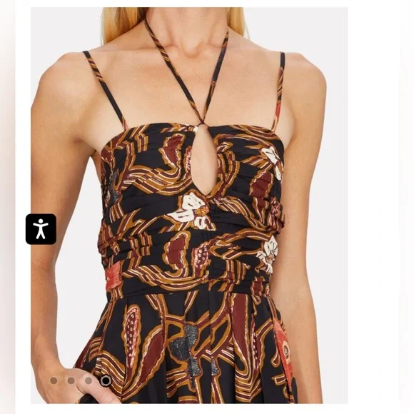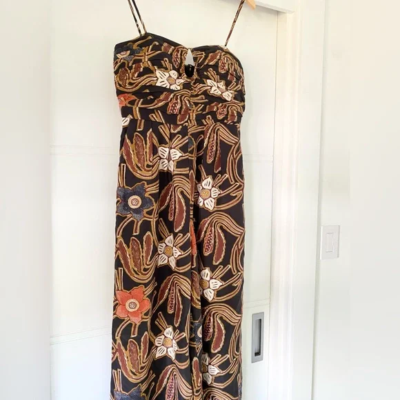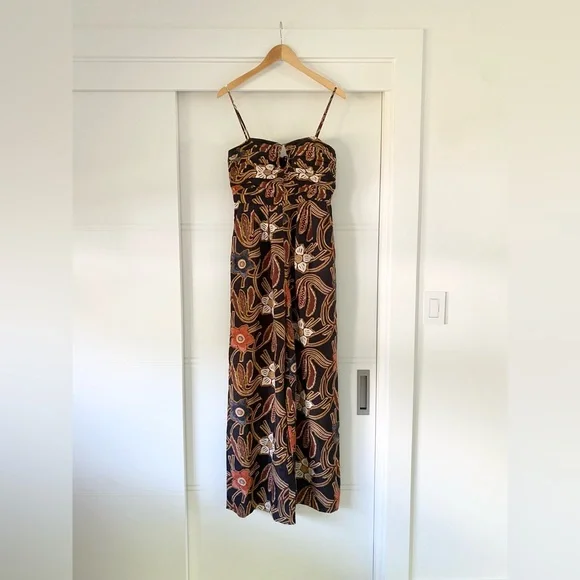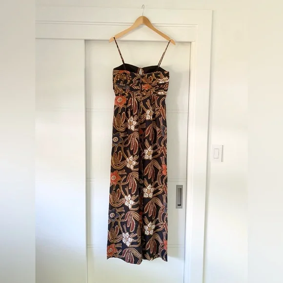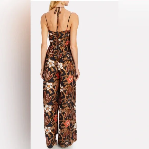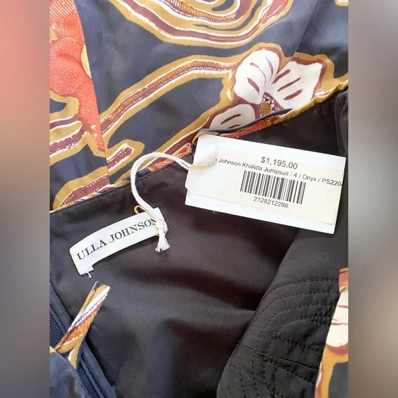 NEW WITH TAGS MINOR FLAW: halter strap is missing. DOES NOT affect the way the jumpsuit fits. ULLA JOHNSON Khalida Floral Silk Wide Leg JumpsuitSize 4Fabric: Lightweight, non-stretch silk taffetaSlip shoulder straps and keyhole halter tiePleated bodice with boned sidesHidden zip at backPleated waistSlant front pocketsFloral printShell: 100% silkLined bodice, unlined skirtLining: 100% polyesterDry cleanImported, China