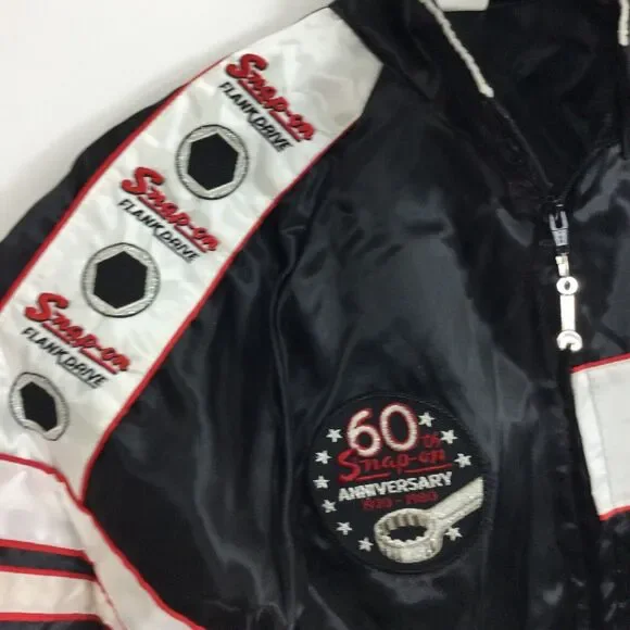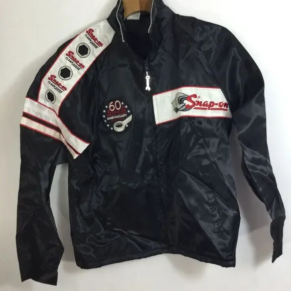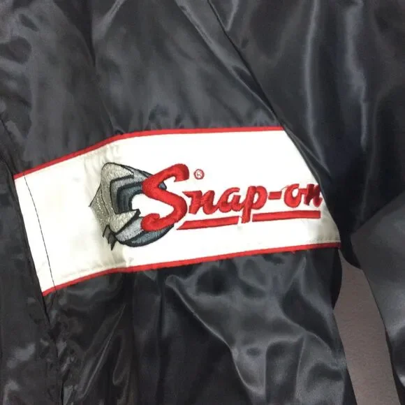 Vtg Snap On Mens Horizon Embroidered Satin Mock Collar Racing Jacket Black MSnap OnSize Medium100% NylonVintage Snap On Mens Horizon Embroidered Satin Mock Collar Racing JacketBlackPlease see pictures for details. All garments measured approximate laying flat.Underarm to Underarm: 20.5"Shoulder to Hem: 26"