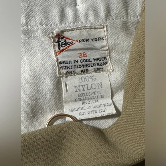 Felco New York Vintage 1950s Sports Uniform 100% Nylon Pants Size 38 USA Retro BaseballSize 38 waist x 34 length - have shrunken a little bit due to vintage ageVery decent - to - good condition overall for true vintage athletic nylon pants - see ALL photos very closelyModerate wear/tear overall - has some marks /spots throughout both sides of the pants- most wear is at the very bottom trim of both pants sleeves - dirty /stiff feel from use wear/worn - see ALL photos very closely for condition