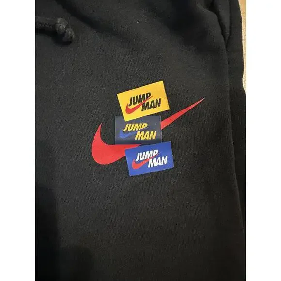 Nike Jordan Jumpman sweatpants offer a comfortable athletic fit with soft fleece fabric for warmth and mobility. Featuring a bold multi-layered Jumpman logo on the left thigh and an embroidered Jumpman logo on the back pocket, these joggers combine classic Jordan style with everyday comfort. Designed with a drawstring waistband, elastic cuffs, and a back pocket with a Velcro closure, they’re perfect for casual wear or workouts.Features:•Category: Men’s Sweatpants / Joggers•Brand: Nike Jordan•Size: Large•Color: Black•Material: 80% Cotton, 20% Polyester•Waist: Adjustable drawstring waistband•Pockets: Side pockets + back pocket with Velcro closure•Cuffs: Elastic ankle cuffs•Logos: Multi-layer Jumpman design on the front, embroidered Jumpman on back pocket•Made in Vietnam✅Smoke and pet free household.✅All items freshly washed prior to posting.✅Open to reasonable offers.✉️ Very responsive to messages.✅Regular parcel drops throughout the week.