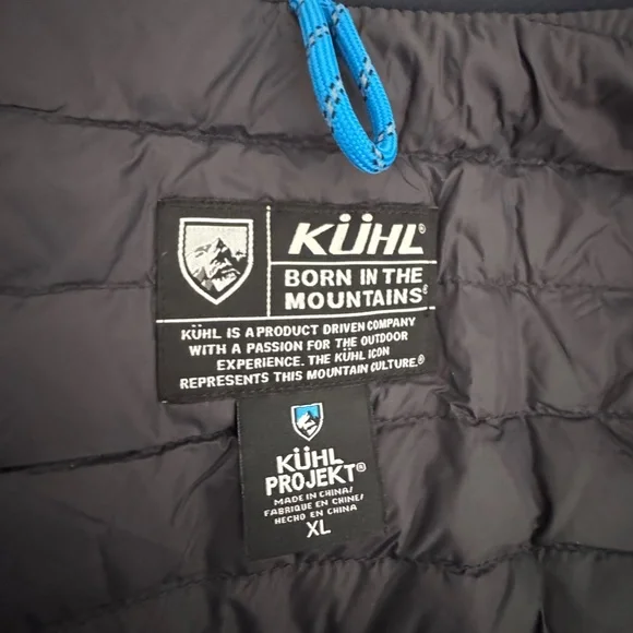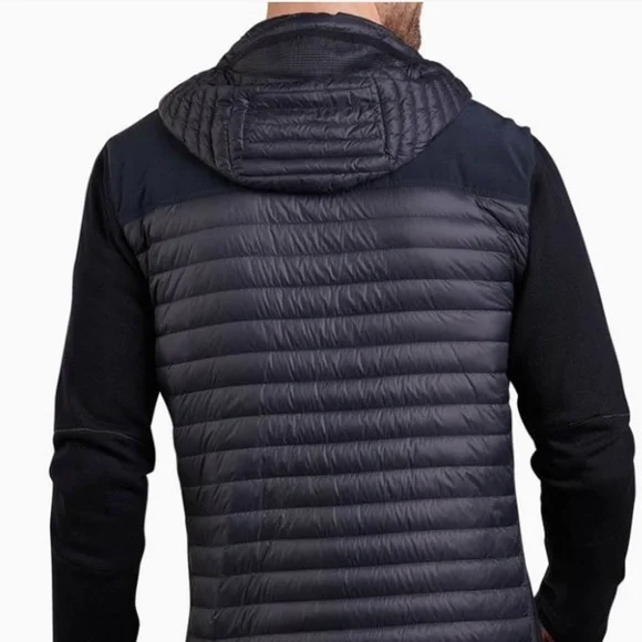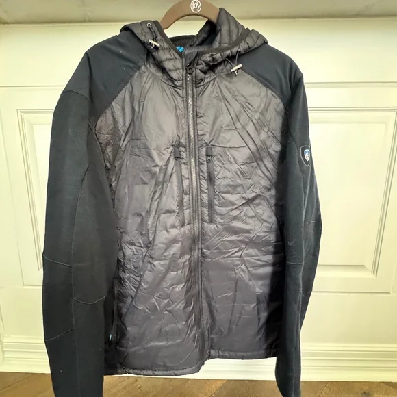 WORN ONCE!Stir up the crowd in the KÜHL PROVOCATEUR™ HYBRID HOODY. Featuring ULTRAERO™ luxury Italian fleece, the PROVOCATEUR keeps you warm, dry and comfortable in distinguished style. 100% RDS Certified Goose Down insulation provides an additional layer of warmth.FeaturesBeautiful wool blend fleece on side body and sleevesLightweight and soft, 20 denier fabric with 800-fill down insulation on front/back body and hoodCordlock adjustment at hood openingKÜHL’s exclusive articulated 5-panel sleeves for better range of motionCustom reflective ribbon on draft flapCombination of down and superior wool blend for temperature regulation and comfortRDS (Responsible Down Standard) CertifiedAdvanced FabricsULTRAERO 51% Polyester, 49% Virgin Wool, 5.5 oz./sq. yd. | 188 GSMFabric 2: 100% Nylon with DWR | 137 GSMInsulation: 100% Goose Down 800 Fill | Down quantity size large 55 G, 1.94 ozGarment weight: 538 G | 19 OZ