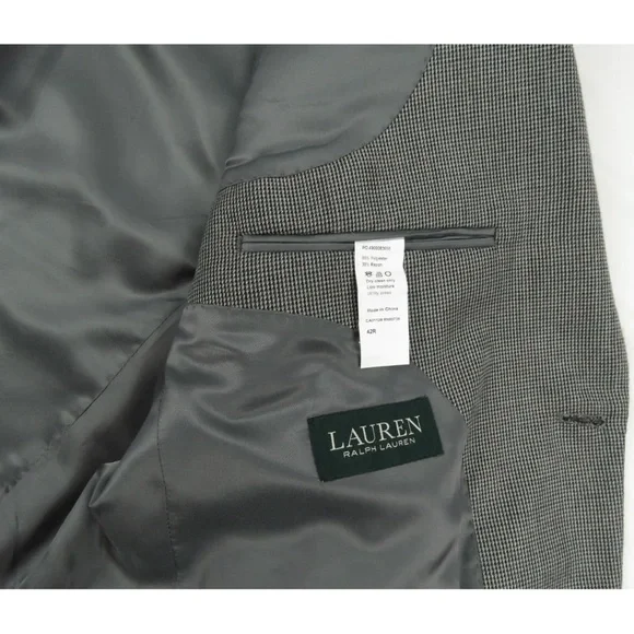 Description: NWOT Lauren Ralph Lauren LRL Gray 2 Button Blazer Sport Coat Jacket -Two button closure -Two front flap pockets-Left chest pocket-Single vented back-Four button cuffs -Notch collarSize (Check Measurements): Mens 42 RColor: GrayFabric: 65% polyester and 35% rayonCondition: New Without TagsItem#: 66993Measurements are in inchesArmpit to armpit: 22 2/4"Back bottom of the collar to the hem: 29"Shoulder to shoulder: 18 1/2"Shoulder seam to end of cuff: 24"BUYING VINTAGE·We do our best to thoroughly inspect all items for any visible imperfections i.e., rips, repairs, holes, stains, etc. and note as such.·Please note vintage sizes are not always comparable to today's sizing. Please refer to the measurements in the description for a more accurate depiction of the true size. If an issue should arrive, please contact us prior to leaving a negative as we strive for providing excellent customer service.Please compare your measurements to the measurements provided in the listing description to ensure a proper fit. 64629