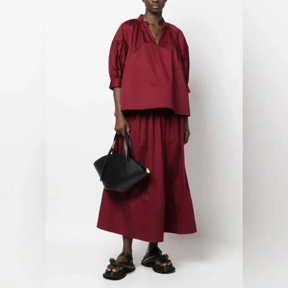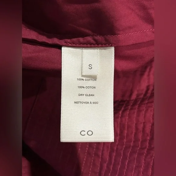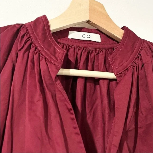 CO Puff Sleeve Cotton Poplin Oversized Top in Wine Red SPart of the 'Essentials' collection, Co's blouse reflects the brand's timeless approach to design. It's cut from cotton-poplin that's intricately gathered to emphasize the loose shape and has a plunging V-neckline and billowy, pleated sleeves. Drama, volume (and minimalism) combined. 100% cotton. Approx. 25.5“ underarm to underarm, 24“ shoulder to hem.Like new!Size small