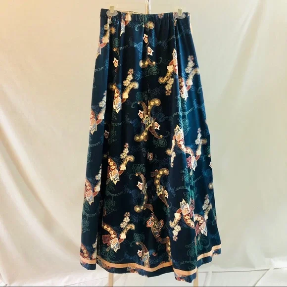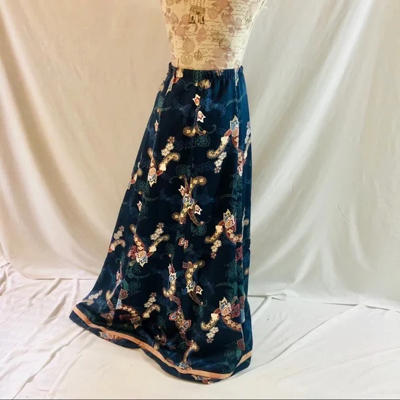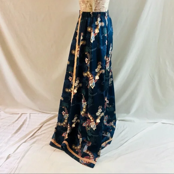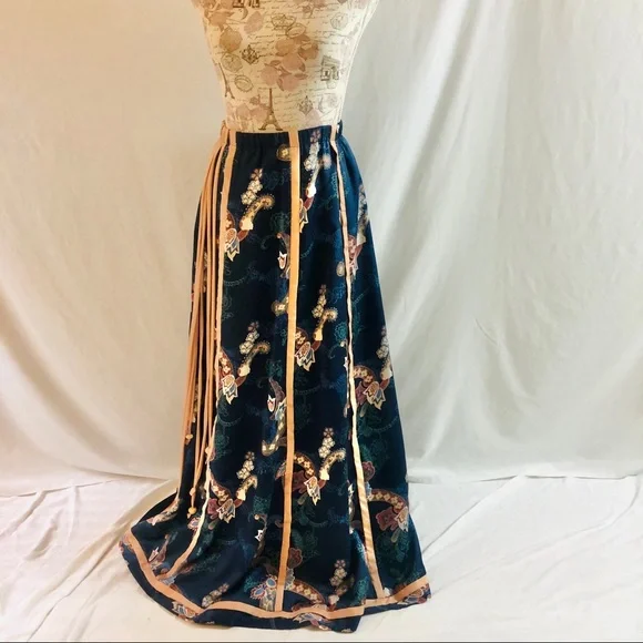 Vintage 70s Chessa Davis Blue Maxi Skirt Beverly Hills Size S/M 27” waist.Side zip.Fully lined with lace hem on lining.Maxi length at 41.5” in length.Waist measures 13.5” across on front side.25” across at hips.Skirt was well kept for decades and has no flaws, is clean.See photos for style details. Pics are mine and unedited.I ship same or next business day.Smoke-free/pet-free