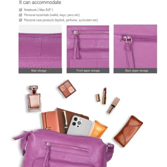 Made from 100% genuine leather with a cotton lining, this leather purse is resistant to wear and tear and easy to maintain. The adjustable strap adds to its versatility, making it a standout among leather handbags and crossbody bags for women.This leather shoulder bag features two exterior zip compartments, one interior zip compartment, a fully lined bill compartment, and a convenient mobile holder, providing ample storage for all your essentials. It’s a practical and stylish choice in the world of sling bags for women.Measuring 14.5X10X3.2 inches, this leather crossbody bag comes with high-quality fittings, including an adjustable strap buckle and YKK zippers, giving it a sleek and modern look. It's perfect for any occasion and a great addition to any collection of leather handbags and crossbody purses for women.