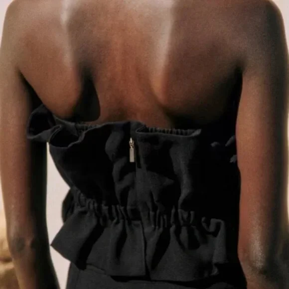 Strapless bustierRuffles fitted at the waistSmocking on the backZip and hook fastening in the middle back89% viscose, 11% linenExcellent pre-owned condition; no flawsSize 42, equivalent to a US 10; measurements taken unstretchedArmpit: approx. 17"Waist: approx. 15.5"Length: approx. 11"See my closet for more Sezane & other great brands. Save when bundling 2 or more items!