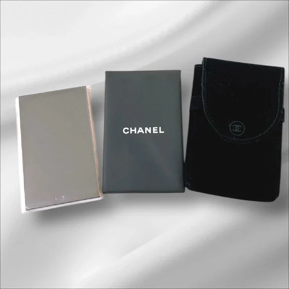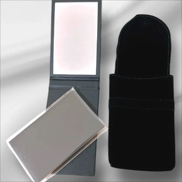 Description:Elevate your on-the-go beauty routine with this authentic Chanel Double Compact Travel Mirror, featuring the iconic CHANEL logo and sleek black fold-over case. This stylish accessory is perfect for makeup touch-ups, skincare checks, or adding a touch of designer luxury to your daily routine.•Brand: Chanel•Color: Black with white Chanel logo•Includes: Dual mirror, original pouch, and retail box•Material: Durable plastic with leather-like finish•Dimensions: Approx. 4.1” H x 2.9” W (10.5 cm x 7.3 cm)•Condition: Excellent pre-owned condition – no cracks, chips, or significant scratches•Made in: ItalyPerfect for gifting or collecting. A must-have vanity essential from one of the world’s most iconic fashion houses.