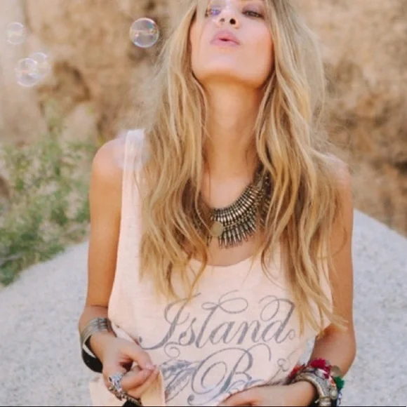 A FAVORITE 💗 This VINTAGE, RARE ISLAND BOHO TANK is my absolute favorite tank that Spell has ever made! Literally just found this while going through all my storage! I personally never wore it, a bit too big! It was only worn a couple times from a dear friend of mine and was washed once, air dried. It does have a light spot that is a bit darker than the cream color, not very noticeable yet it is there (see pic, front bottom left). I’ve sold a couple of these, price is definitely reduced due to this! Besides that it is in perfect condition! No fading, piling, or any other flaws. It has a tiny bit of rainbow like colors on the feather, though very hard to see, but so cool! This piece is very hard to find and a definite favorite for all Spell lovers! So soft, loose yet flattering, such a fun, and sexy tank for summer daze 💗