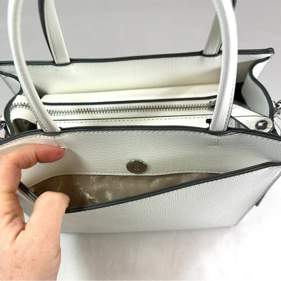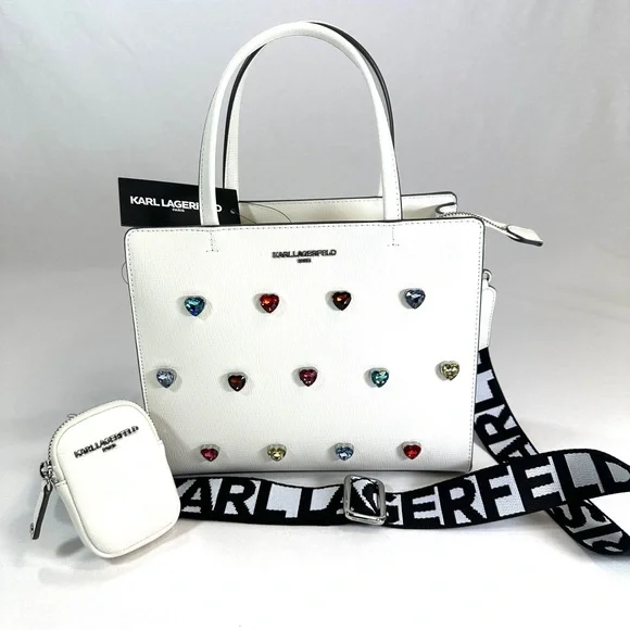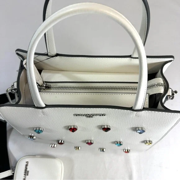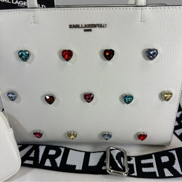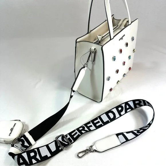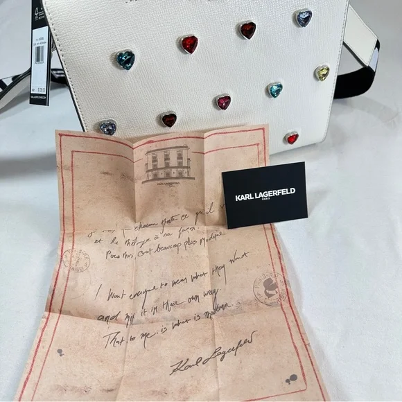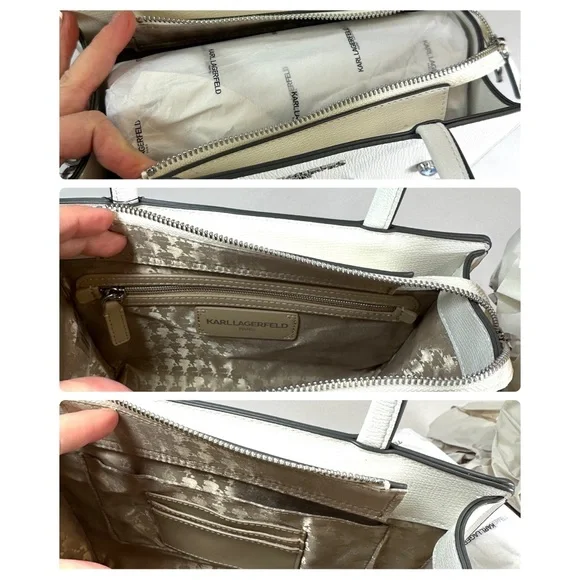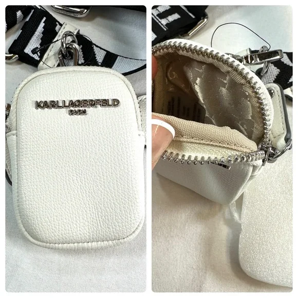 This NWOT elegant white crossbody bag from Karl Lagerfeld combines style and functionality. Its sleek design is perfect for any occasion, offering a sophisticated touch to your ensemble. BRAND NEW!! Never used!! Crafted with attention to detail, it showcases the iconic branding that makes it a standout accessory.