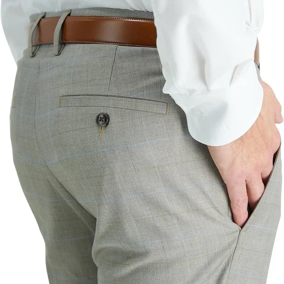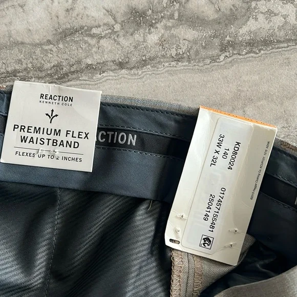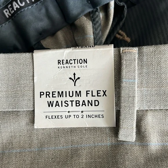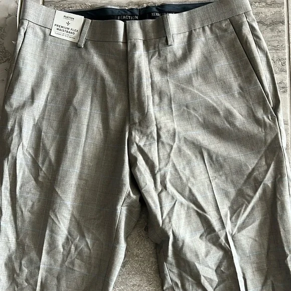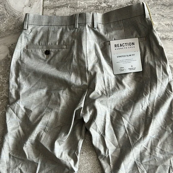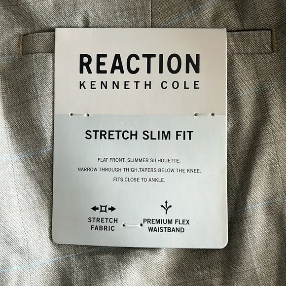 Kenneth Cole REACTION Premium Flex Slim Fit Dress Pants in Oatmeal, Fine Window PaneSize 33W x 32L New with TagThese pants are designed so they perform and keep up with your busy lifestyle. Cut in a slim fit, these pants offer stretch and mobility when you need it most in your day. PRO STYLE TIP: Pair these pants with your favorite T-shirt and sneakers. To dress this pant up a bit, toss on a solid blazer to balance out the laid-back look.FEATURES: This flat front slim fit pant features a Texture Grid design with a Premium Flex Waistband and incredible stretch built into the fibers allowing you to move with ease throughout the day.MATERIAL: Crafted in 69% Polyester, 29% Viscose, 2% Elastane for stretch and incredible bounce back recovery.COMFORT: There is no shortage of comfort here! The Premium Flex waistband allows up to 2" of stretch on your mid-section.EASY CARE: Whether you are at the office our out on the weekend the easy care of machine washing will make this your favorite dress pant!UP!