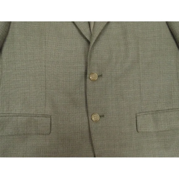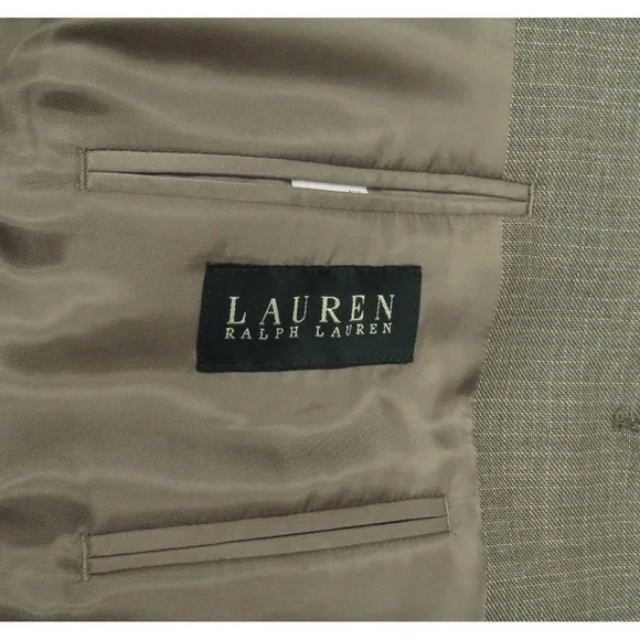 Description: NWOT Lauren Ralph Lauren LRL Wool Silk 2 Button Blazer Sport Coat Jacket -Two button closure -Two front flap pockets-Left chest pocket-Single vented back-Four button cuffs-Notch collarSize (Check Measurements): Mens 42 SColor: TanFabric: 52% silk and 48% woolCondition: New Without TagsItem#: 66198Measurements are in inchesArmpit to armpit: 22"Back bottom of the collar to the hem: 28 3/4"Shoulder to shoulder: 19"Shoulder seam to end of cuff: 23 1/4"BUYING VINTAGE·We do our best to thoroughly inspect all items for any visible imperfections i.e., rips, repairs, holes, stains, etc. and note as such.·Please note vintage sizes are not always comparable to today's sizing. Please refer to the measurements in the description for a more accurate depiction of the true size. If an issue should arrive, please contact us prior to leaving a negative as we strive for providing excellent customer service.Please compare your measurements to the measurements provided in the listing description to ensure a proper fit. 62856