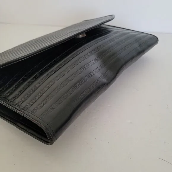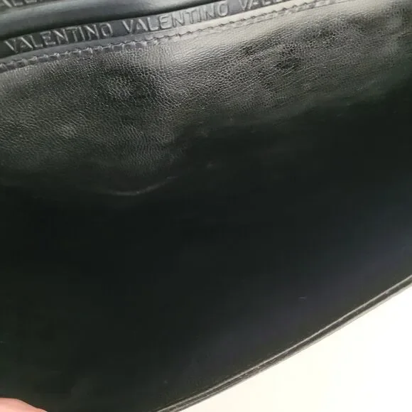 Mario Valentino Bag Clutch Unisex Vintage Pouch Italian Black Logo LeatherAuthenticmeasures width 12" height 8" depth 1"Gold hardware1 zip and front pocket inside, back pocketCondition is pre-owned, exterior minor wear,interior minor wear, good.Please check out my other listings bundle for discount. Thank you!