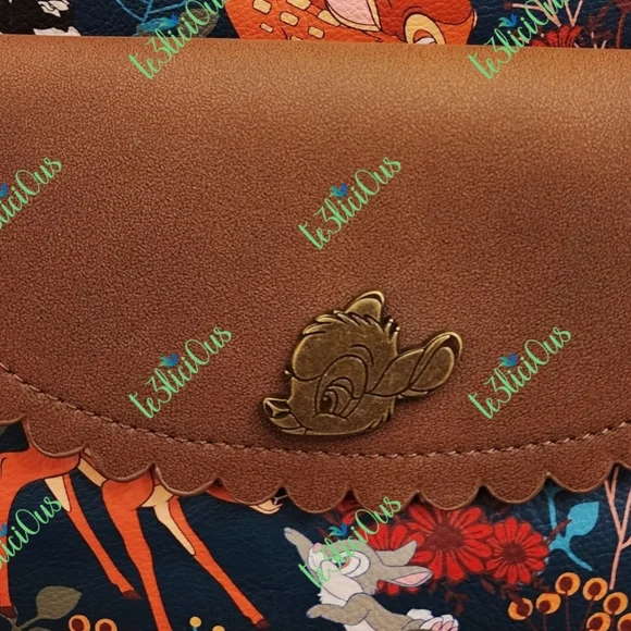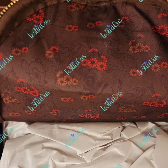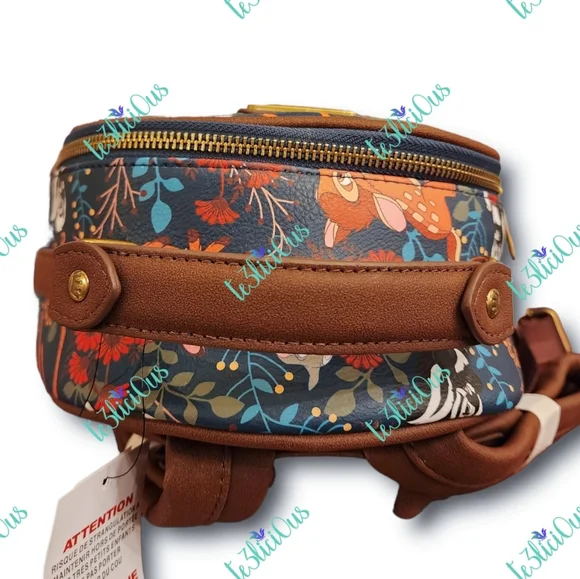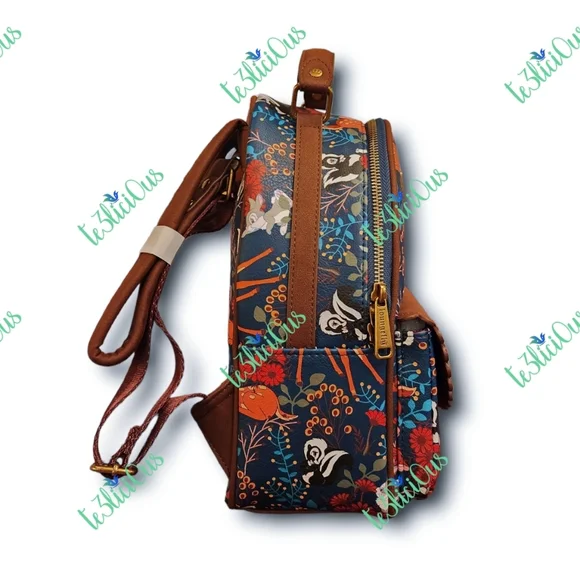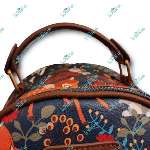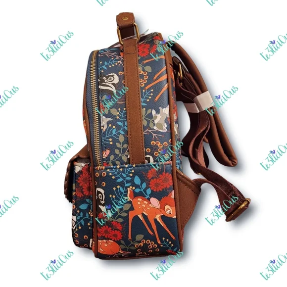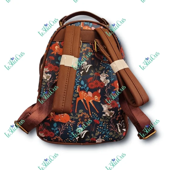 100% AUTHENTIC AND BRAND NEW DISNEY PARKS MERCHANDISE*Pattern Placement varies*Simulated leather mini backpackAllover print includesBambi, Thumper, Flower, and floral pattern*Double zipper main compartmentLoungefly logo metal pullsFront compartment with scalloped flap closureBambi cloisonné snapAdjustable padded shoulder strapsTop carry handleLinedGoldtone hardwareDisney Parks x Loungefly logo label plateInspired by Walt Disney's Bambi (1942)52% PVC / 48% polyurethane / polyester / metalApprox. 11 1/2'' H x 8 1/4'' W x 4'' DImported