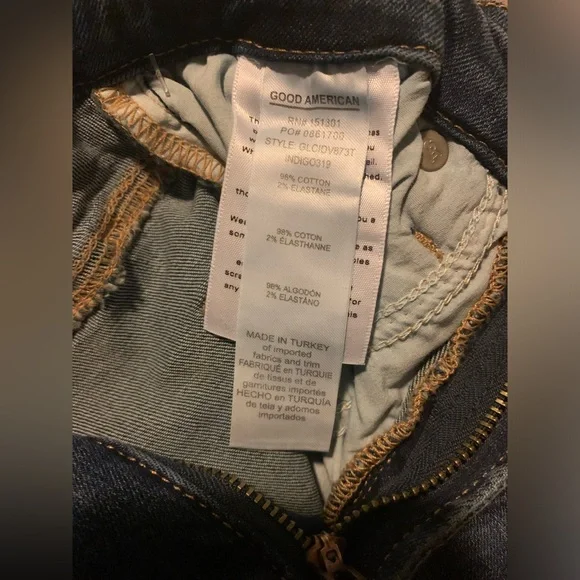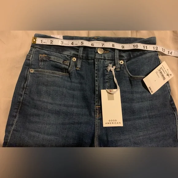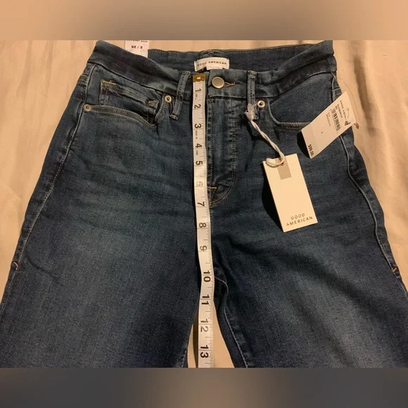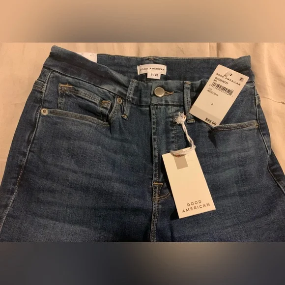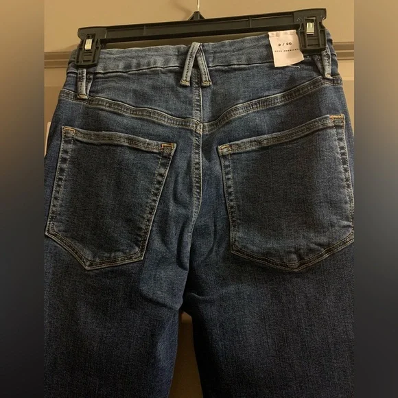 Good American Good Legs Skinny Jeans– Medium dark blue wash – Size 2/26– NWTThe ultimate sculpting jeans, featuring skinny slim fit legs. Good Legs are the body-hugging, booty shaping jeans of your dreams.Mid-riseSkinny legsFront zip-fly closureClassic 5-pocketsGap-proof waistbandReinforced belt loopsTummy smoothing technologyBody hugging and booty shaping, high recovery denim for all day supportClean details and hemMedium Dark blue wash98% Cotton, 2% ElastaneMachine wash cold, tumble dryMade in TurkeyNo stains or flawsPlease refer to pictures for waist, rise, and inseam measurements.Questions? Leave a comment below!