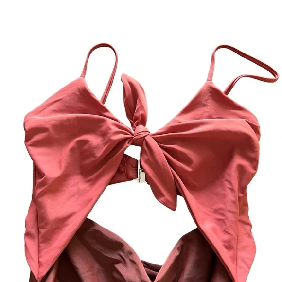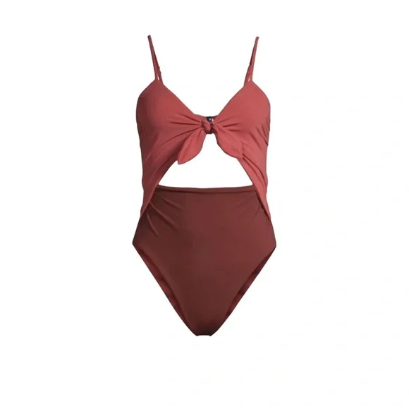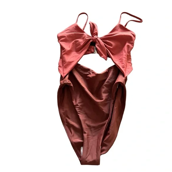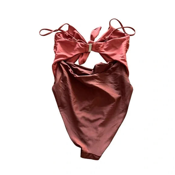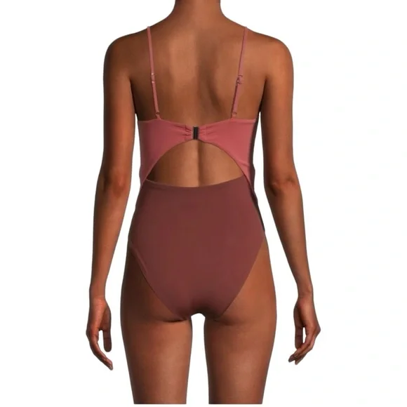 New without tags Hygienic liner in place Veronica Beard Aniston Cut Out One-Piece Swimsuit Color: Rose Brown Women’s Size Medium Feel your most confident lounging by the water in this one-piece swimsuit with a tie detail, a sunny cutout and flirty high legs.Adjustable strapsFull back coverage80% polyamide, 20% elastaneHand wash, line dryMade in the USA of imported fabric
