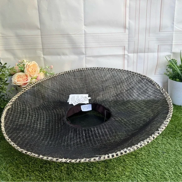 Stylish black wide-brim hat. Perfect for sunny days. DETAILSThe Maris hat is a striking expression of modern craftsmanship, featuring a hand-blocked sinamay base with a natural crosshatched overlay that creates an exquisite interplay of texture and transparency. Its structured wide brim offers dramatic elegance, while the sleek grosgrain band provides a refined finish.• Handcrafted in New York City• Ultra Wide brim• Transparent layers of Textural SinamayGigi Burris Millinery was founded to preserve the romantic craft of millinery, we work to ensure timeless design and thoughtful craftsmanship in every piece produced. We are a female-owned company dedicated to responsible, local and handmade production in New.MEASUREMENT IN INCHES 22 MEASUREMENT IN CM 56HAT SIZE M