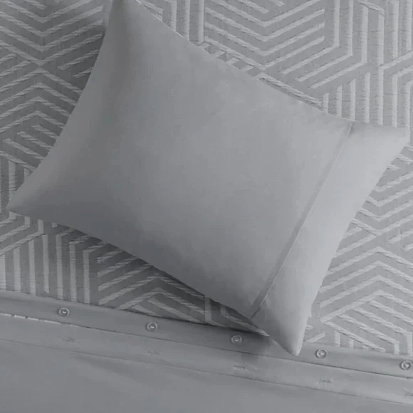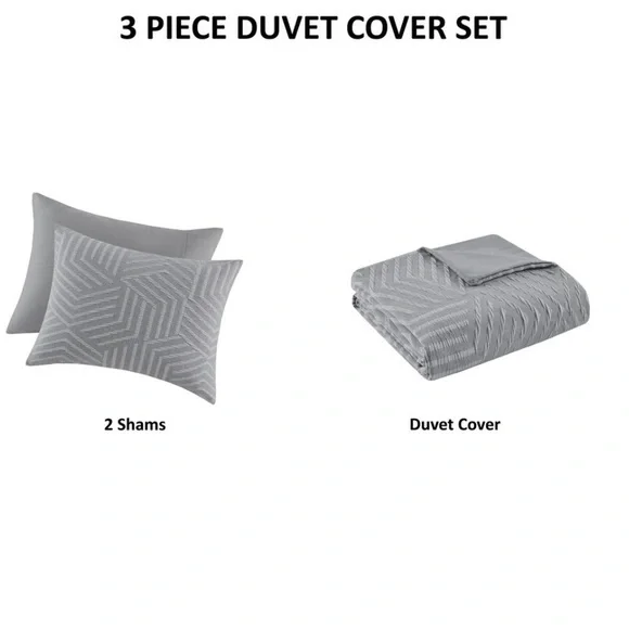 Featuring a tonal geometric design, the Urban Habitat Soren matelasse jacquard duvet cover set adds a modern and sophisticated style to your bedroom.The duvet cover has a soft microfiber reverse, while coordinating shams complete the look of the bedding set.Features:Set includes duvet cover and 2 shams Poly matelasse jacquard duvet cover set with microfiber reverse and polyester fillingFeatures a tonal geometric design for a sophisticated and modern lookAntimicrobial treatment to keep the bedding fresher for longer by inhibiting bacteria growthButton closure with inner ties to secure the insert (inserts sold separately)Machine washable for easy careKing/ Cal King Dimensions:1 Duvet Cover: 104 inches wide x 92 inches long2 King Shams: 20 inches wide x 36 inches long333075C10PO60