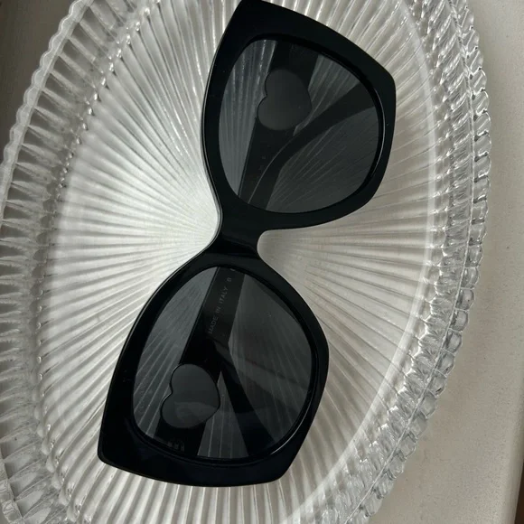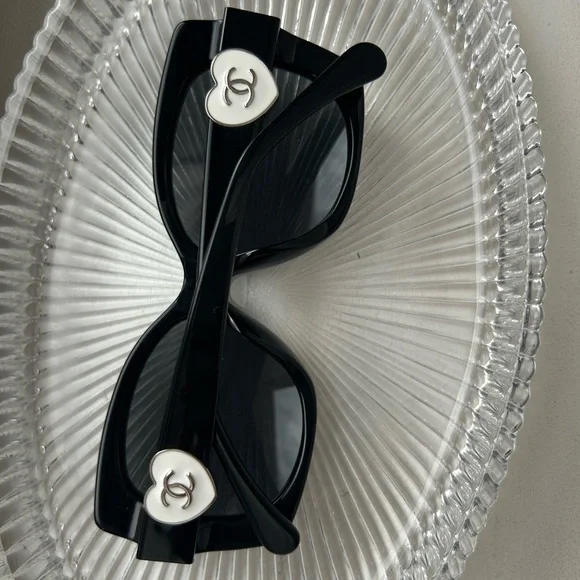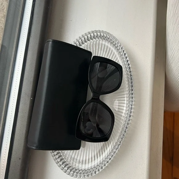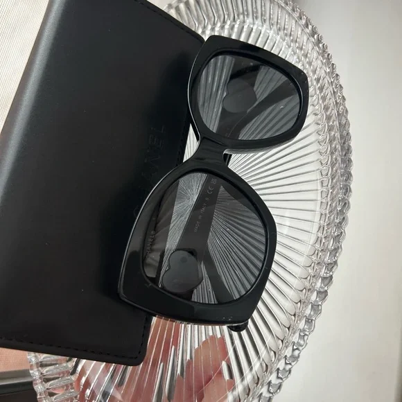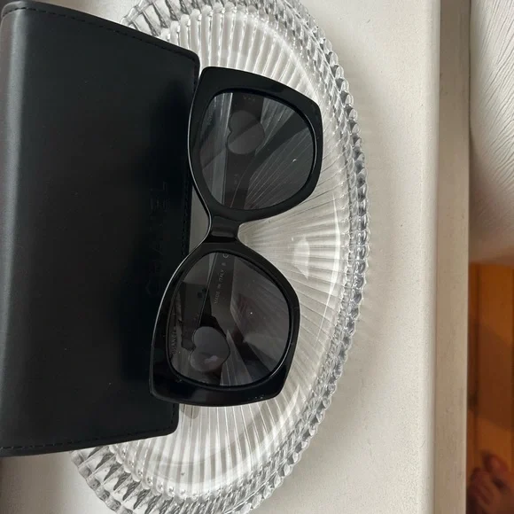 These CHANEL sunglasses feature a striking oversized cat-eye design, perfect for adding a touch of drama to any outfit. The classic black frames offer a versatile and timeless look. Crafted with a sleek bridge and smooth finish, these sunglasses are a must-have accessory for style enthusiasts.Never used.