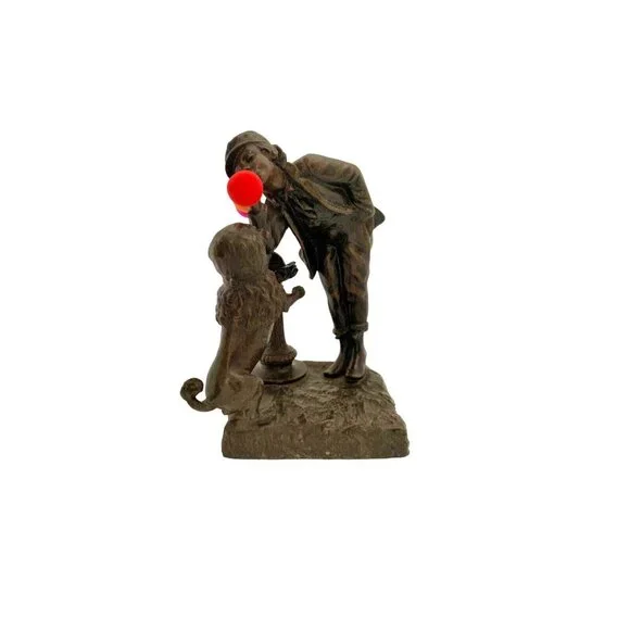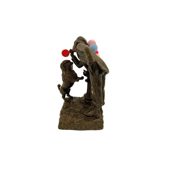 This stunning metal sculpture depicts a man holding a balloon with his beloved pet poodle by his side. The intricate details on this vintage French statue with modern twist showcase the charm and elegance of a bygone era. The multicolor finish and metallic sheen make it a perfect addition to any home decor collection. ******Note: This is French and has foundry stamp on base. It was originally a lamp. Balloons are not original to the piece****We accept reasonable offersThank you for checking our listingPlease read the description and see the photos for measurements and details Feel free to ask about any of the items in the listing’s photosCheck out our other listings on our Online Store as we ship nationwideEnjoy our different backgrounds staging to your decorative inspiration Note: We have made every effort to describe and display the item as accurately as possible,we don’t claim to be expert in every item we sellAll items are sold as is and we make every effort to describe the condition of items as accurately as possible. Expect normal signs of wear associated with antiques, vintage, and used itemsNotice: This item is in pre-owned old vintage condition, please inspect the item before staging or use to insure safetyYour purchases are through and protected by the website Purchase Protection, Please be sure that all your information are updated Discounted pricing when multiple items are bundledWe take great care in packing to ensure safe shipment to