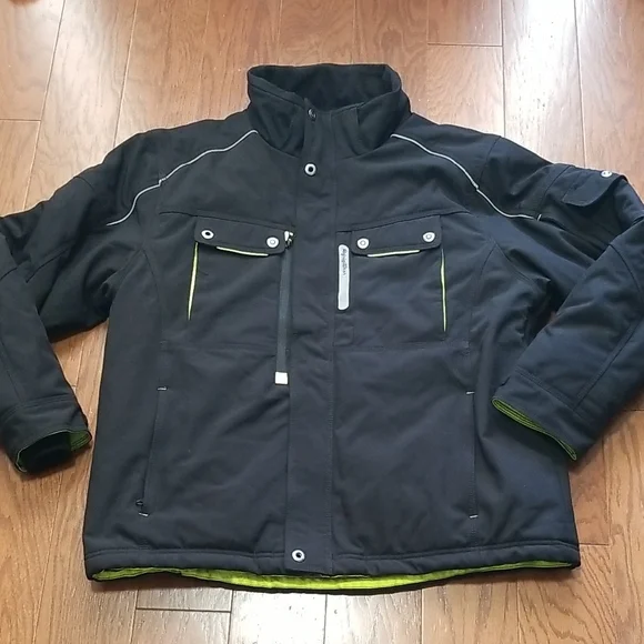 A zipper closure with snap-close storm flap and inner drawcord at the waist seals out cold while the water-repellent, wind-tight finish on this thermal work jacket blocks out even the most extreme winter weather. With 2 zippered insulated front pockets, 2 chest-flap pockets, 1 zippered chest pocket, 1 zippered left-sleeve pocket, 1 zippered inside pocket, and a 1-stall pencil pocket on the left sleeve, this rugged outerwear has plenty of space to warm up your hands and store small tools.The detachable hood curves to improve your peripheral vision, and the reflective piping trim with HiVis accents makes it easy for others to see you anywhereComfort Rating: -60°FOver 600g insulating power, including 200g AirBlaze® polyester insulationSoft 100% polyester shellWater-repellent, wind-tight finishWarmPlus graphene lining absorbs body heat and transfers it back to you for more warmthWarmPlus graphene lining heats up 4-times quicker than other linings but cools quickly when removed from body heatZipper closure with snap-close storm flapDetachable hoodUnder-arm unzips to open mesh ventilation patch for cooling2 Zippered hand-warmer pockets2 Chest pockets with flaps1 Zippered chest pocket1 Zippered pocket on left sleeve1 Zippered inside pocket1 Flap pocket with 1-stall pencil pocket on left sleevePerformance-Flex at back for better movementAdjustable cuffs Reflective piping trim with HiVis accents Glove clip to security retail price $245